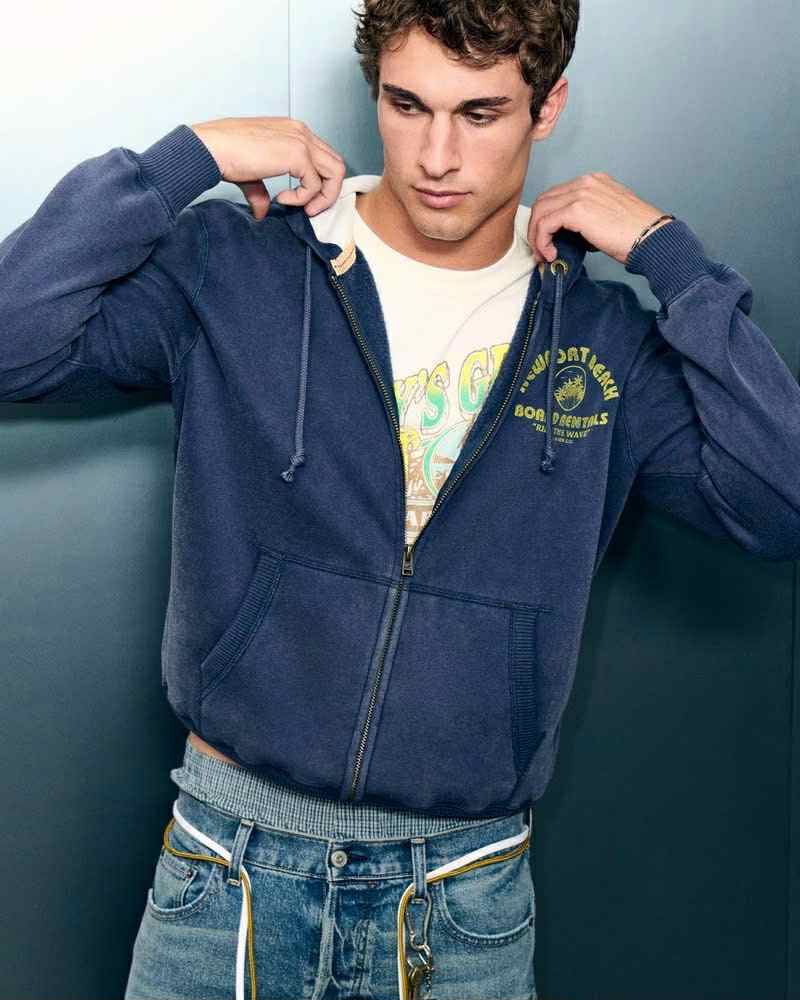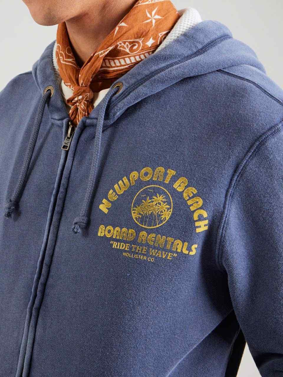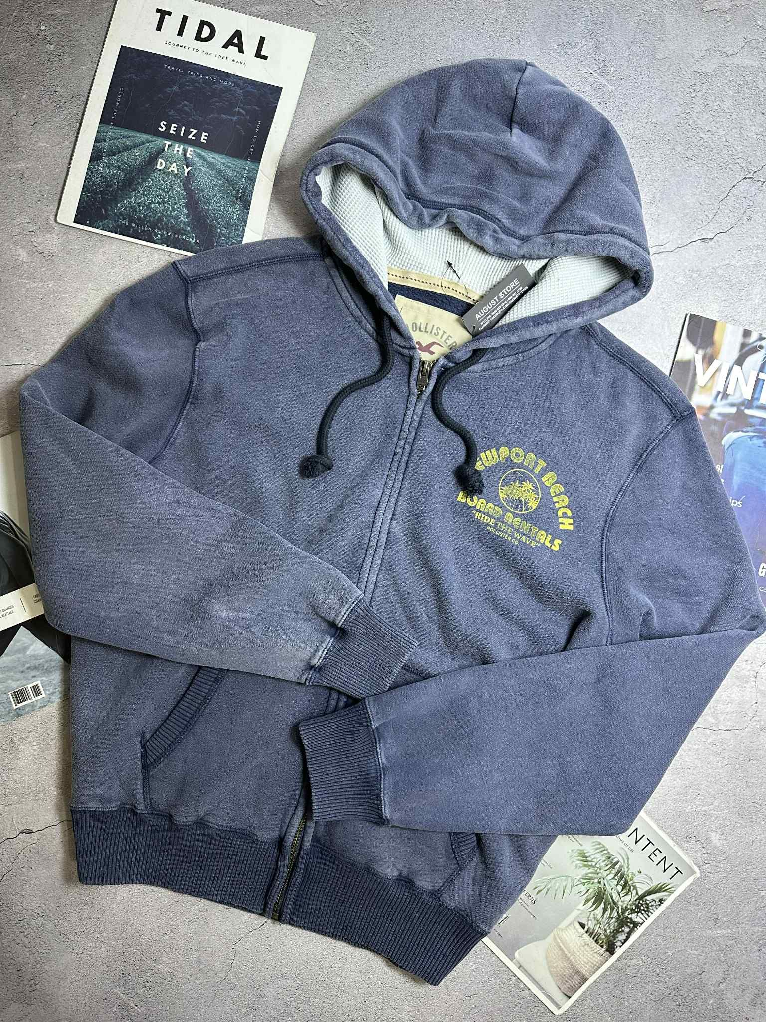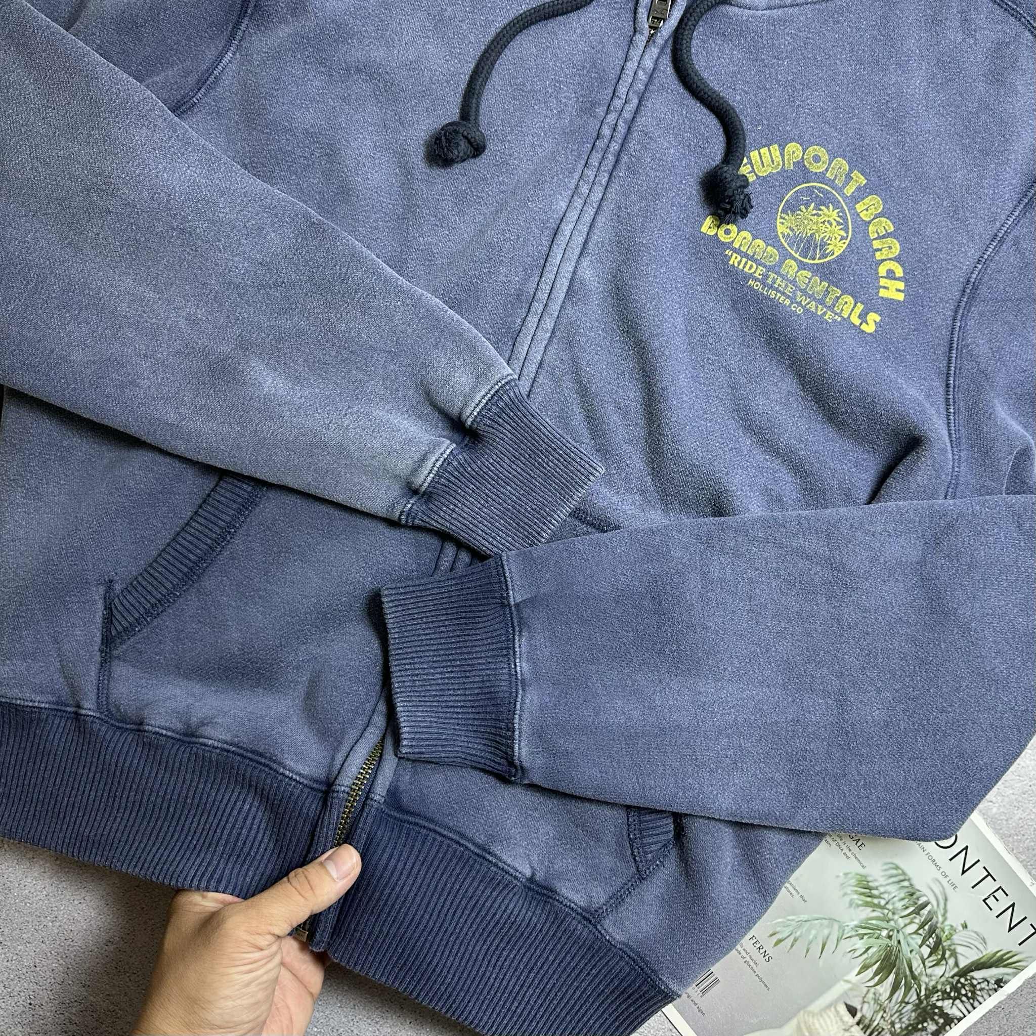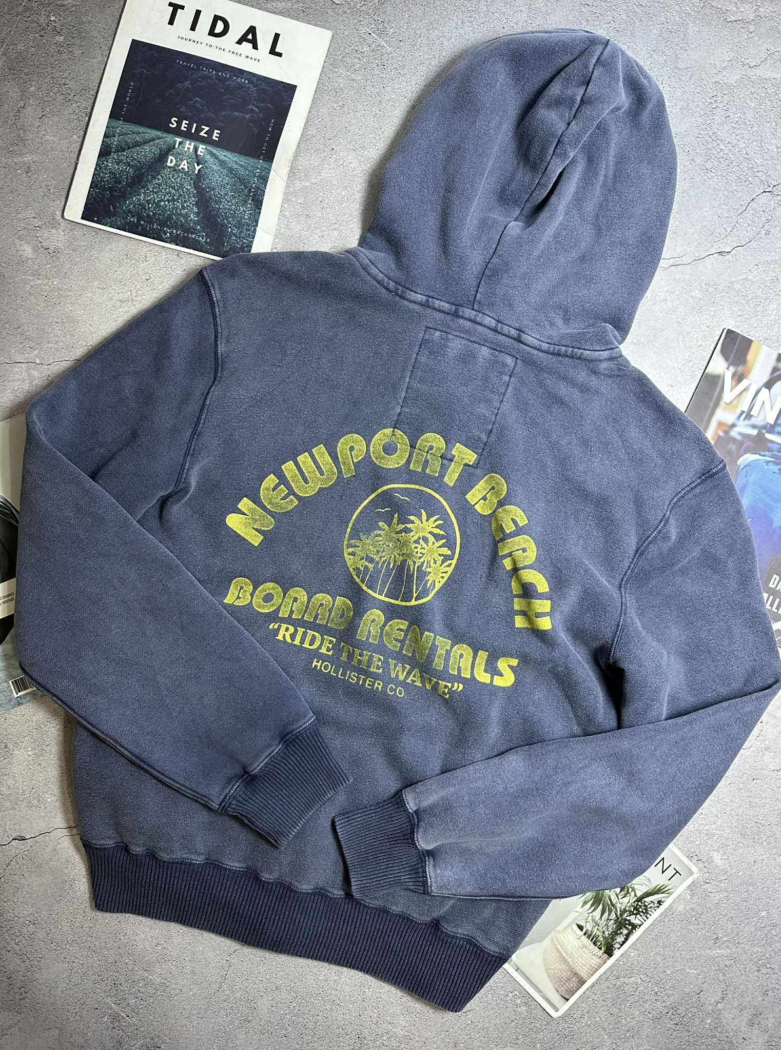 Mẫu áo khoác nỉ mũ vải wash siêu chất của Hollister, cùng hình in NEWPORT BEACH nổi bật phía trước ngực & sau lưng áo, hàng dư xịn chính hãng.