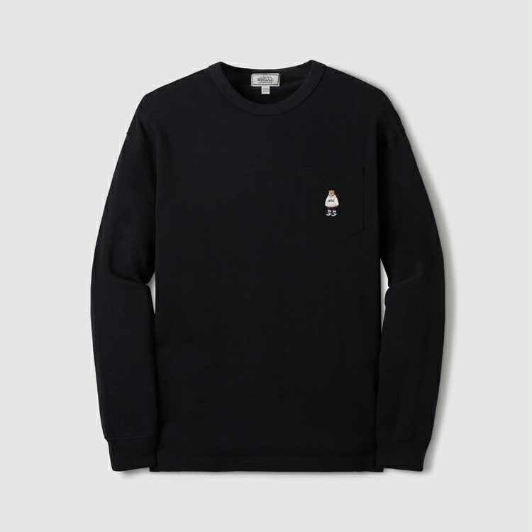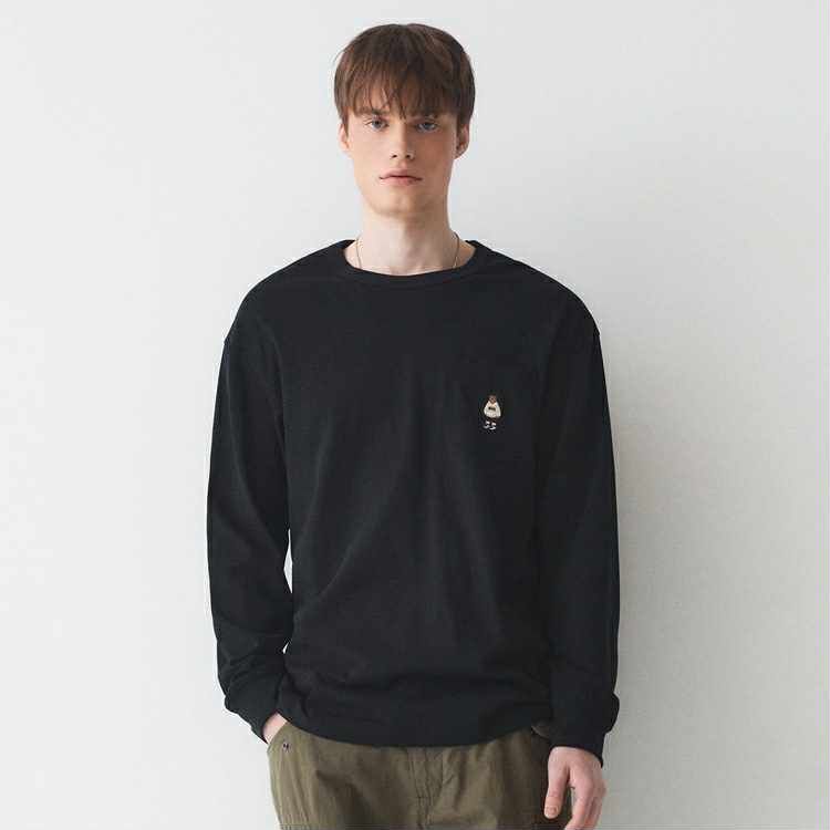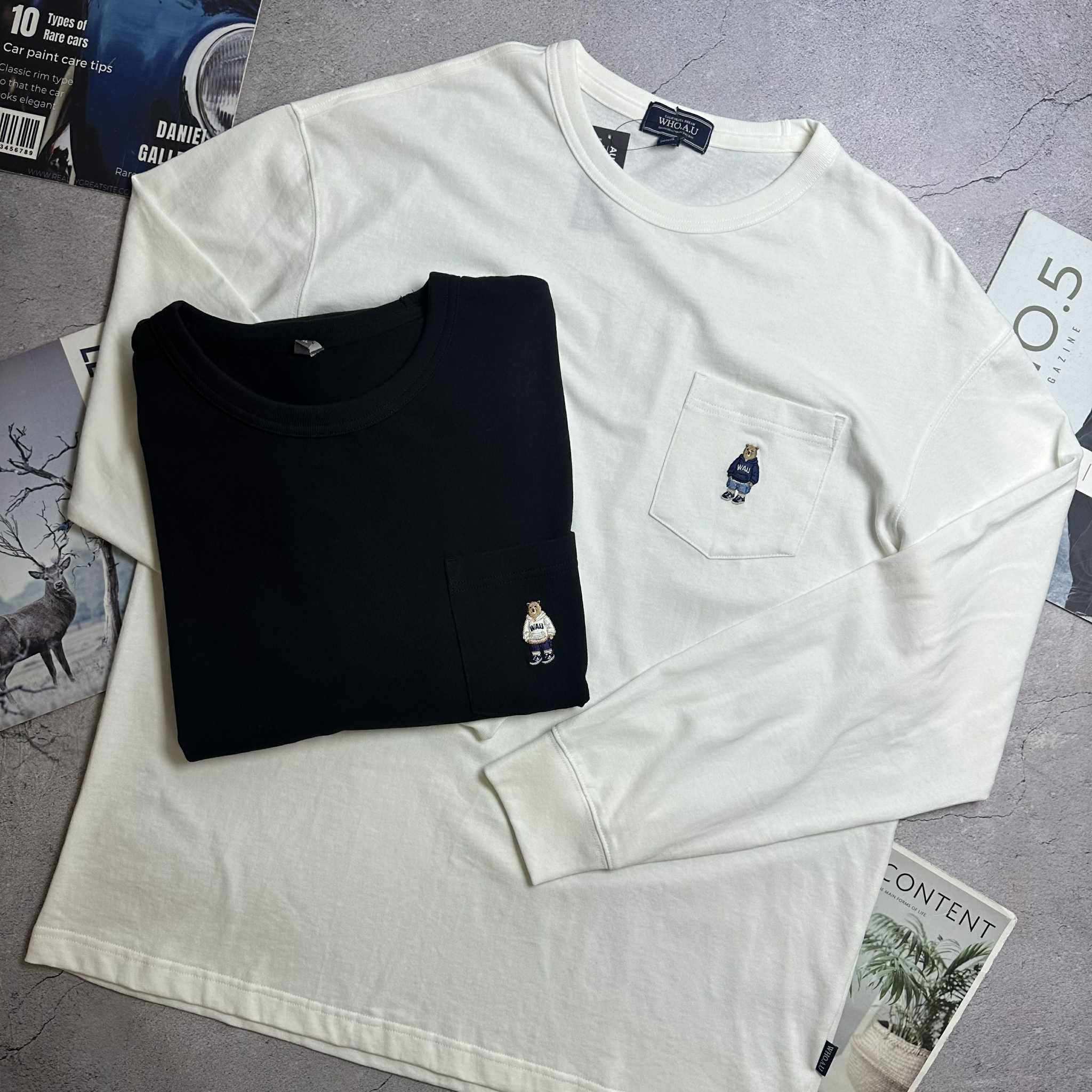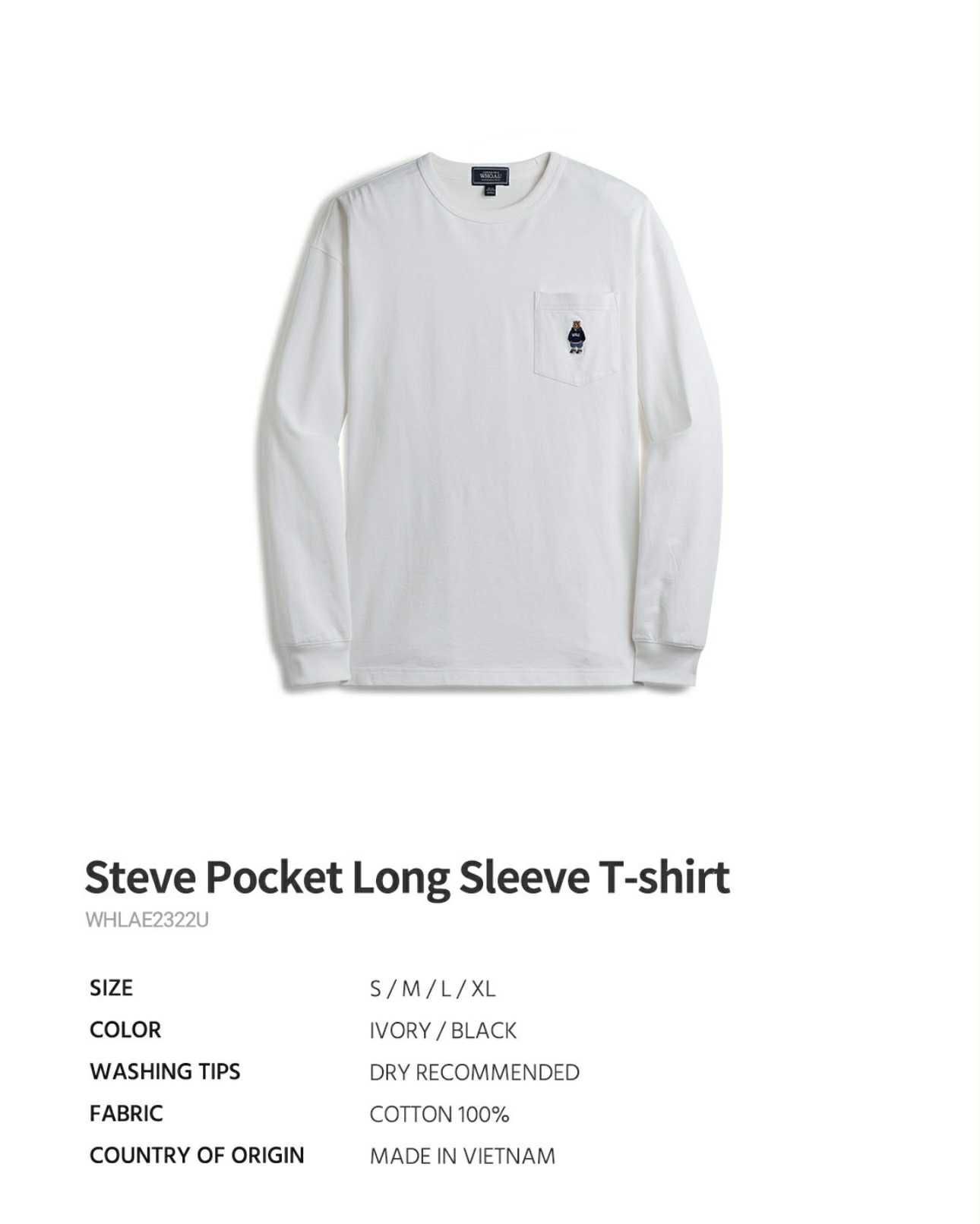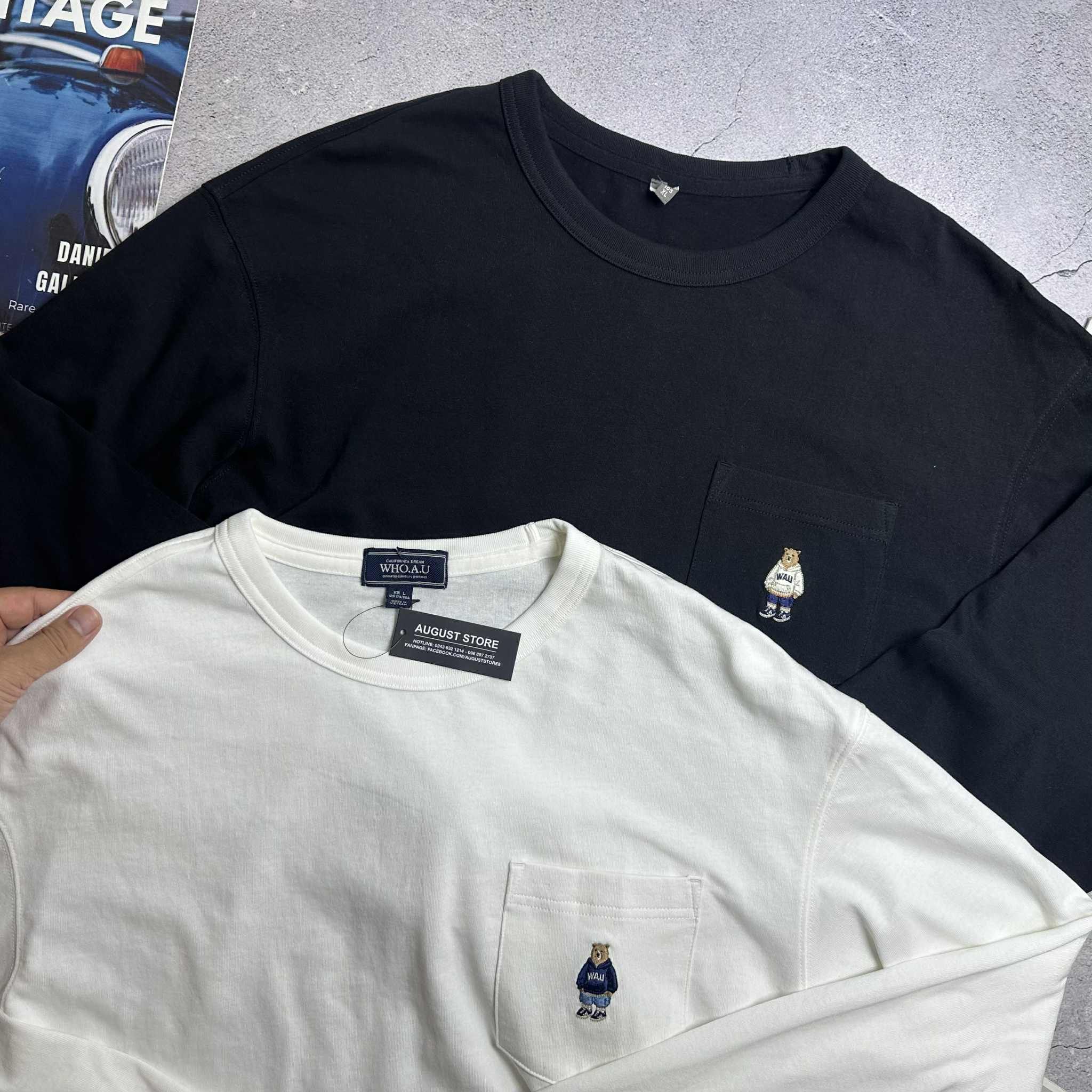 Mẫu áo dài tay 2 màu đen & trắng basic với thiết kế túi ngực cùng logo Gấu Steve thêu nổi bật, hàng dư xịn chính hãng.