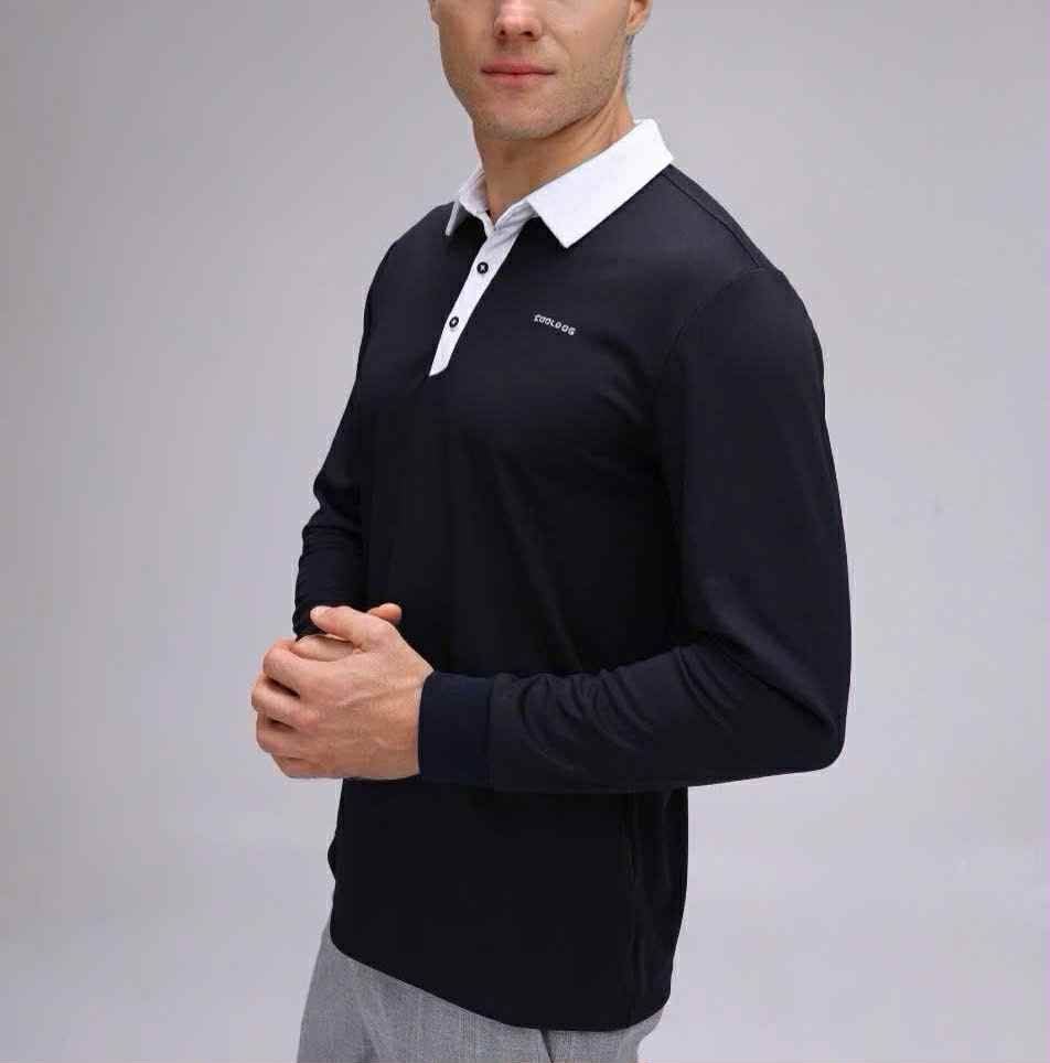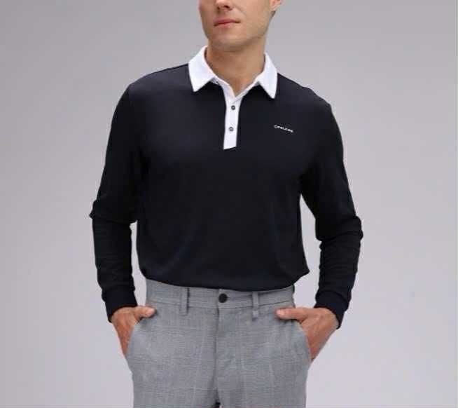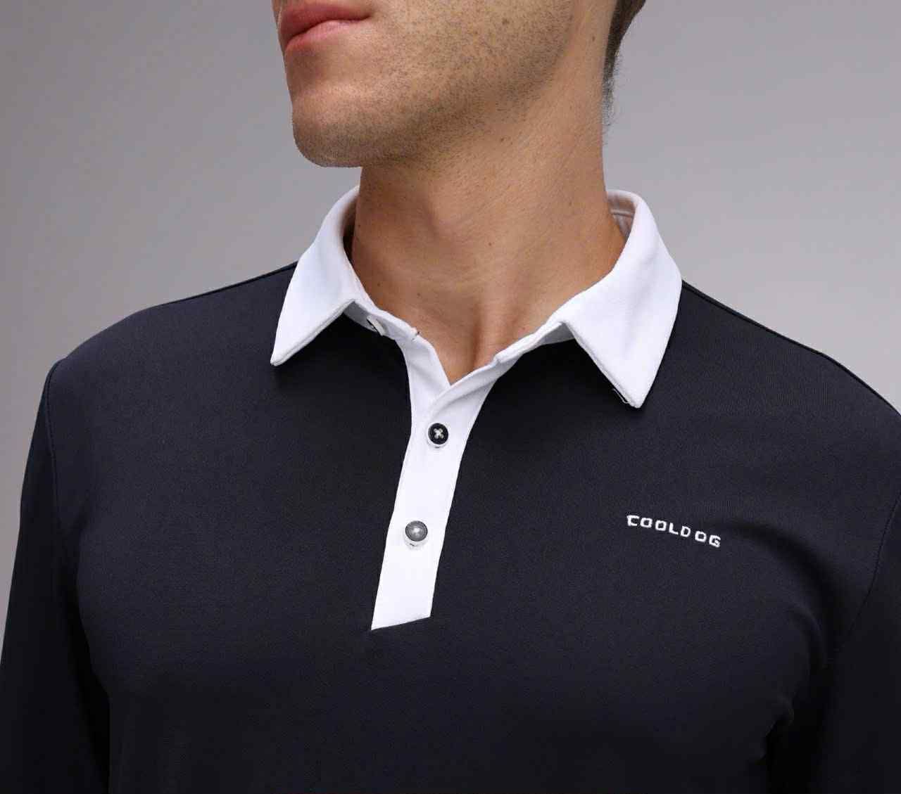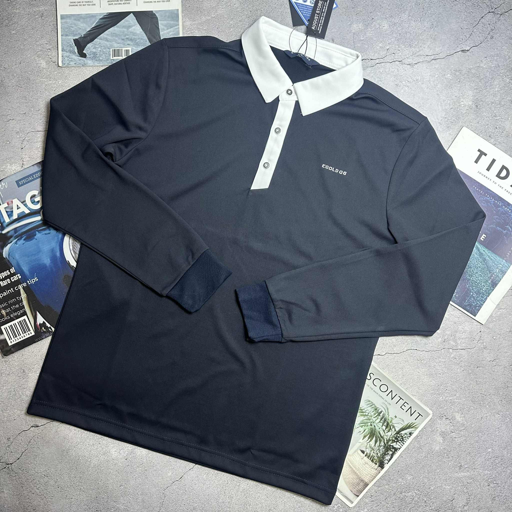Mẫu áo polo dài tay vải siêu nhẹ, co giãn, chống tia UV, form slimfit dễ mặc, với thiết kế phối cổ trắng nổi bật của CoolDog xuất Hàn mẫu mới nhất thu đông 2025.